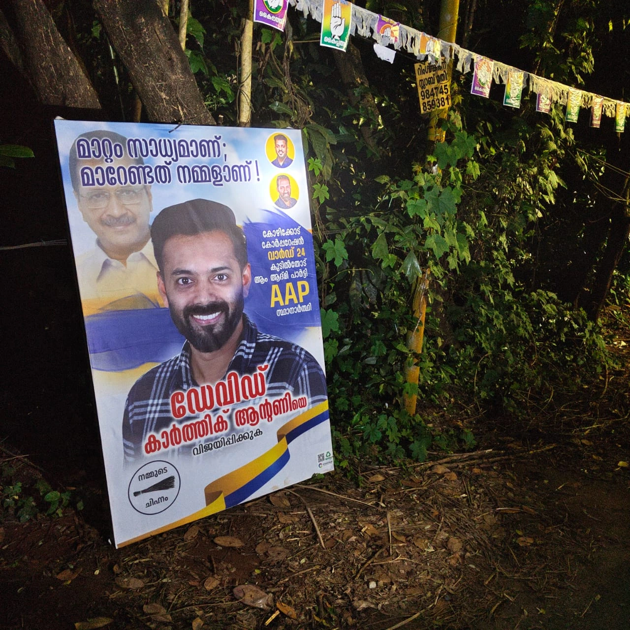 കോഴിക്കോട് കോർപ്പറേഷനിലെ 24-ാം വാർഡ് (കുടിൽതോട് നിവാസിയായ ശ്രീ. ഡേവിഡ് കാർത്തിക് ആന്റണി മാറ്റത്തിന്റെ രാഷ്ട്രീയവുമായി നിങ്ങളുടെ മുന്നിലേക്ക്. 40 വയസ്സുള്ള ഇദ്ദേഹം, വിദ്യാഭ്യാസം, സാങ്കേതികവിദ്യ, മാനേജ്മെന്റ്, സേവനമേഖല എന്നിവയിൽ 15 വർഷത്തെ പ്രവൃത്തിപരിചയമുള്ള, നാടിന്റെ വികസന സ്വപ്നങ്ങൾ ക്കൊപ്പം നിൽക്കുന്ന ഒരു യുവ പ്രൊഫഷണലാണ്.